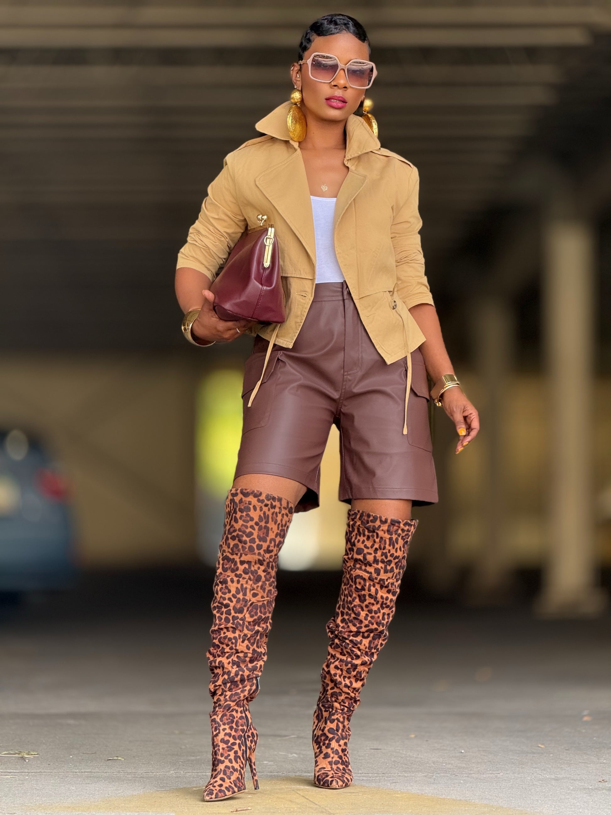 The modern trench is updated in a cool cropped silhouette and is featured in a soft, lightweight construction with wide lapels, epaulette shoulder styling, long sleeves, elasticized string waist detailing and classic double-breasted button closure.