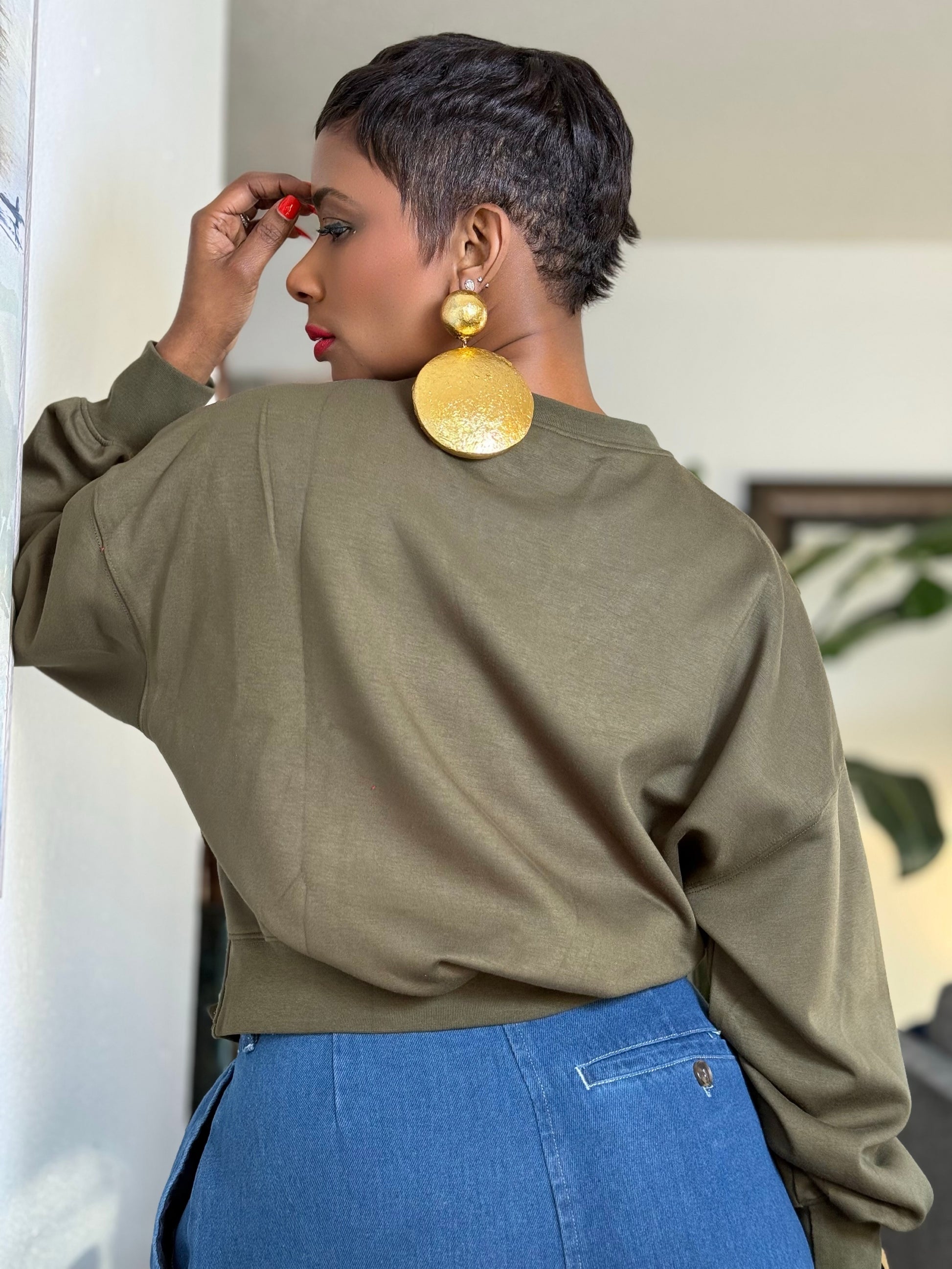Be ready to hit the town in this pullover sweatshirt which features a round neckline, long sleeves and statement buckled waist detail.